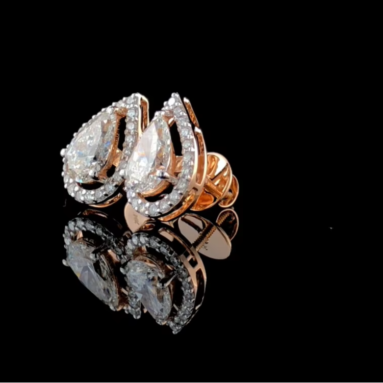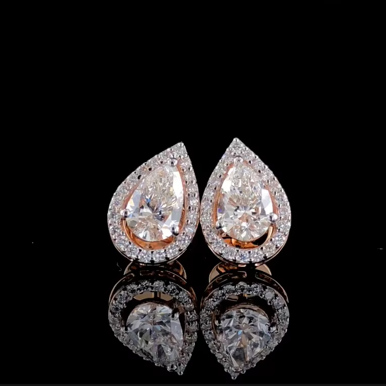 Boucles d'oreilles clous en diamant de laboratoire taille poire 2,20 CTW, or massif 14 carats, certifiées IGI