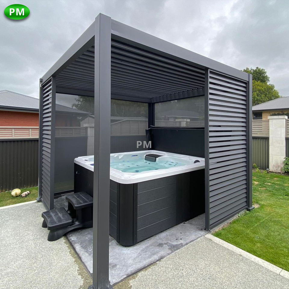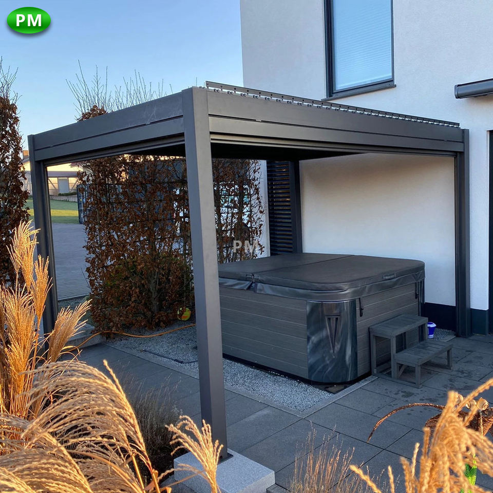 2-20% de réduction auvent en métal pare-soleil extérieur pavillon de spa de bain petite véranda persienne toit pergola kits de vente au détail 5x5m