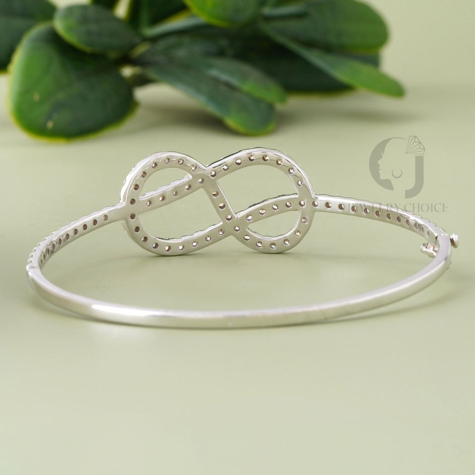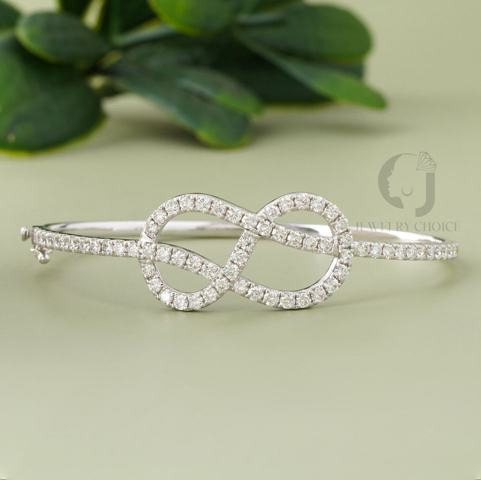 : 2.27ct Round Cut Lab Grown Diamond Infinity Bracelet 14K White Gold Dainty Bangle Sustainable Sparkling Womens Jewelry Gift