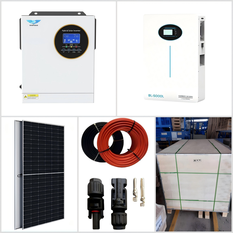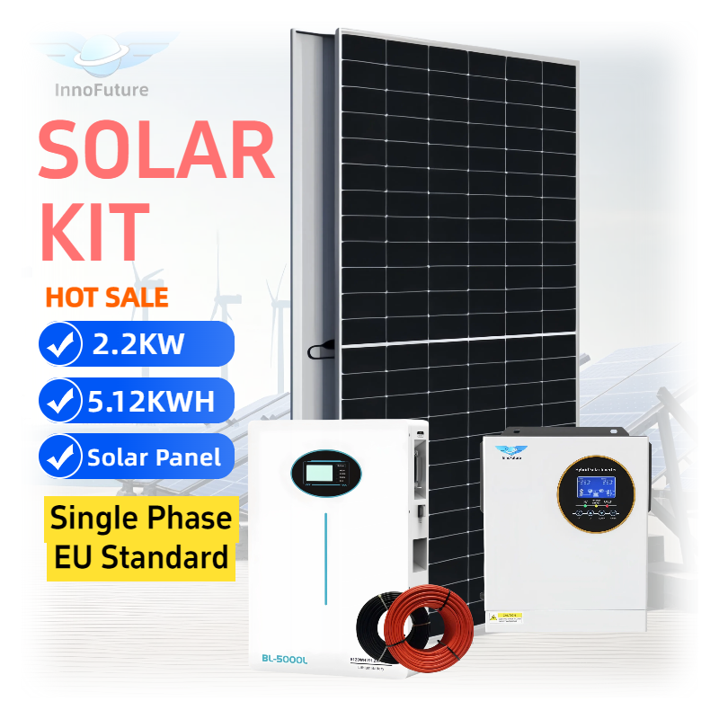 2.2KW 24VDC Version UE Monophasé Hybride MPPT Onduleur Solaire Kit Complet 5.12KWH LiFePO4 530W Panneau Solaire Lithium Ion