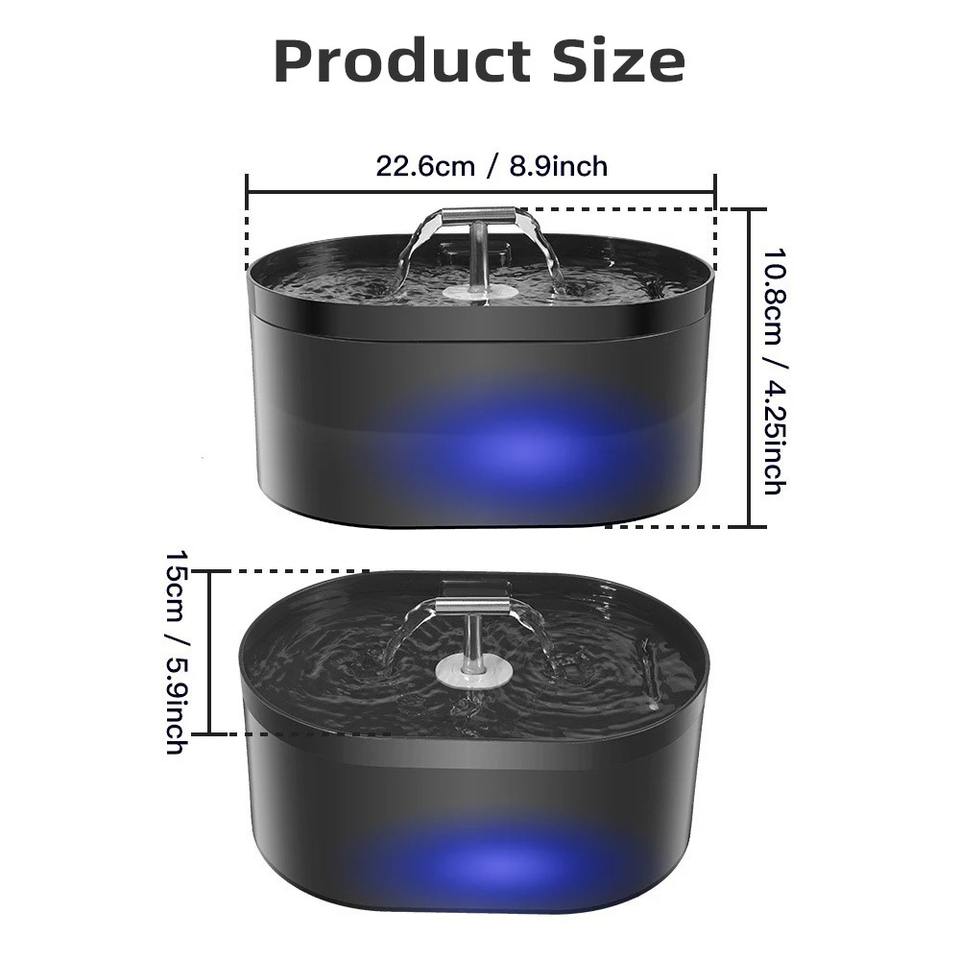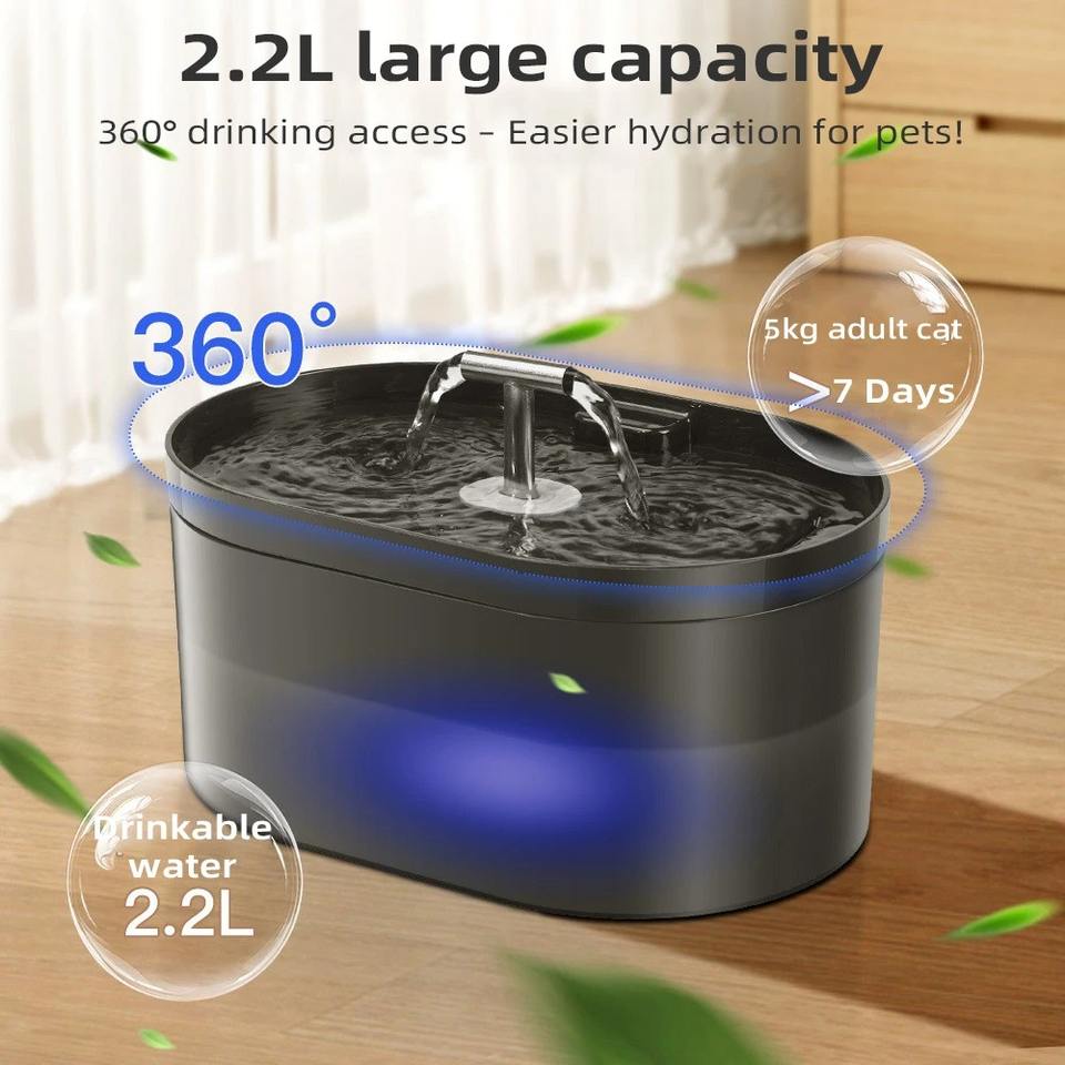 Fontaine à eau pour chat en plastique solide de 2,2 L, fontaine à eau intelligente pour animaux de compagnie avec filtre, lumière LED, charbon actif pour chats et chiens