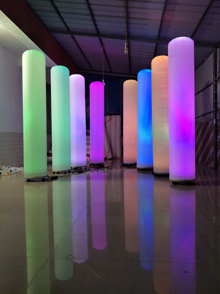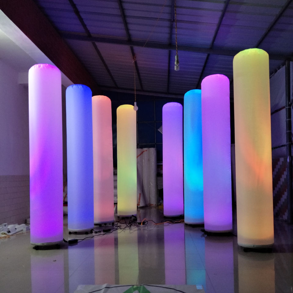 2.2m H sol gonflable LED éclairage colonne Tube pilier Mini ventilateur de base pour la publicité extérieure et les décorations de fête d'anniversaire