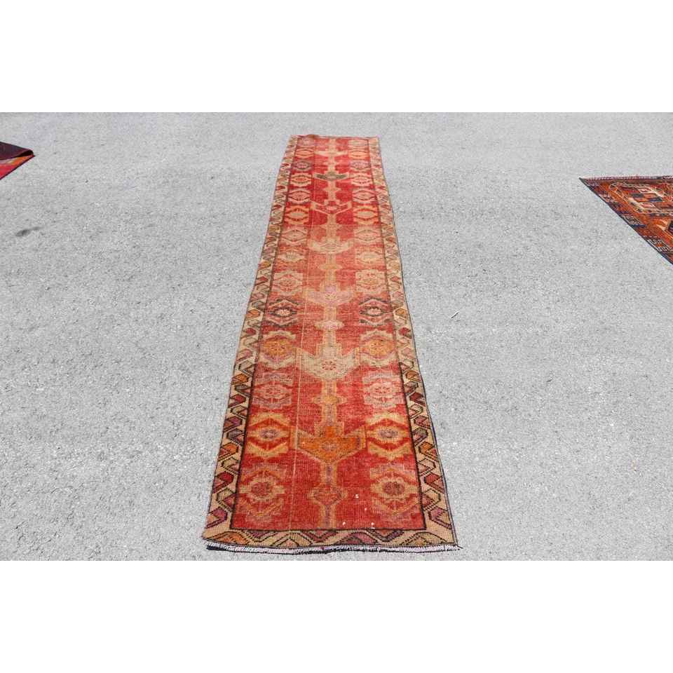 Tapis turc Herki rouge uni, 2,2 x 11,6 pieds, type runner