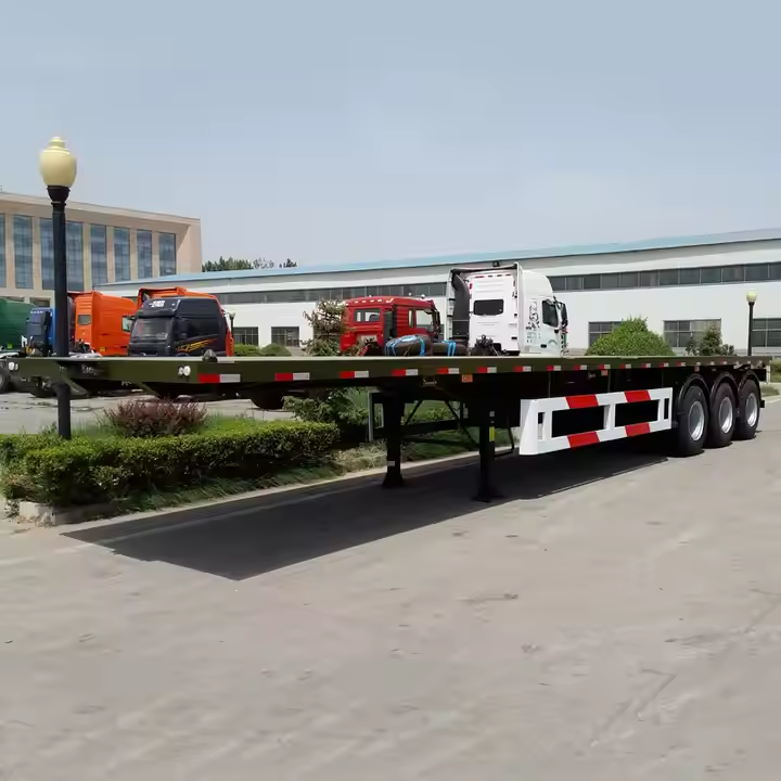 Semi-remorque plateau en acier à 2/3/4 essieux, 40 pieds, pour transport de marchandises/conteneurs, avec système de verrouillage Twist Lock