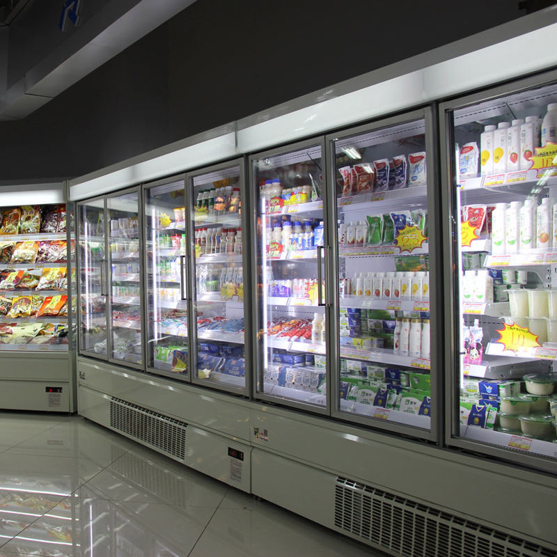 Réfrigérateur vitrine à porte vitrée de type branchable à 2/3/4 portes, armoire réfrigérée pour supermarché et épicerie