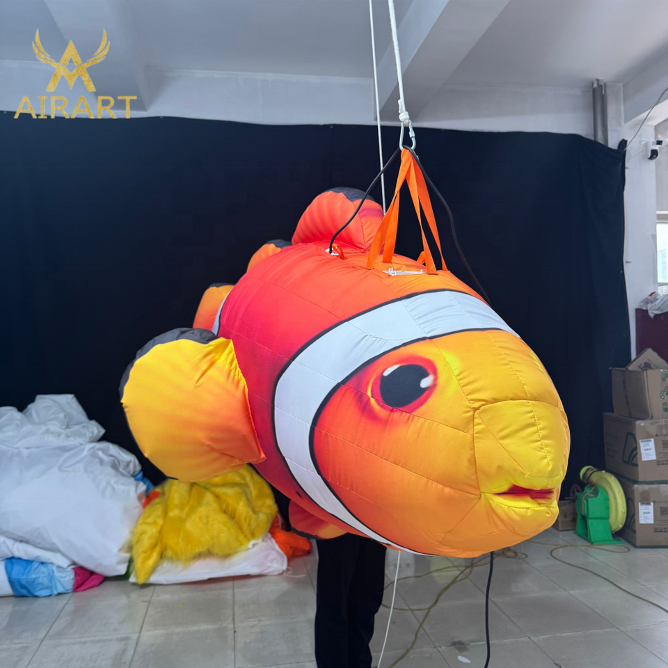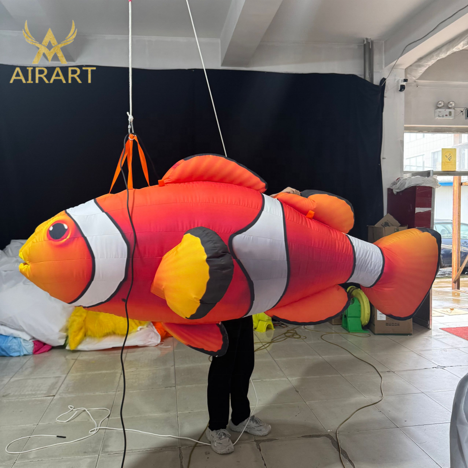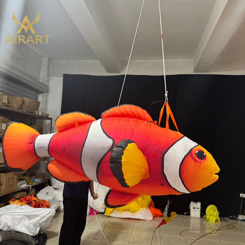 Ballon de poisson de récif gonflable de 2.3m de long pour l'activité de fête sur le thème de l'océan, mascotte de poisson clown éclatante pour la publicité