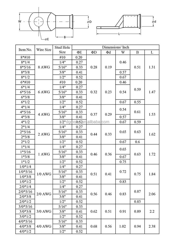 Bornes de câble de batterie à anneau en O 2 4 6 8 1/0 2/0 4/0 AWG, bornes à sertir/soudure en cuivre nu, blocs de bornes de produit