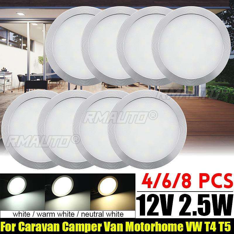 2/4/6/8PCS 12V LED Lumière de plafond ronde pour voiture, éclairage intérieur pour VW T4 T5 Camper Van Caravan Motorhome Boat RV Van