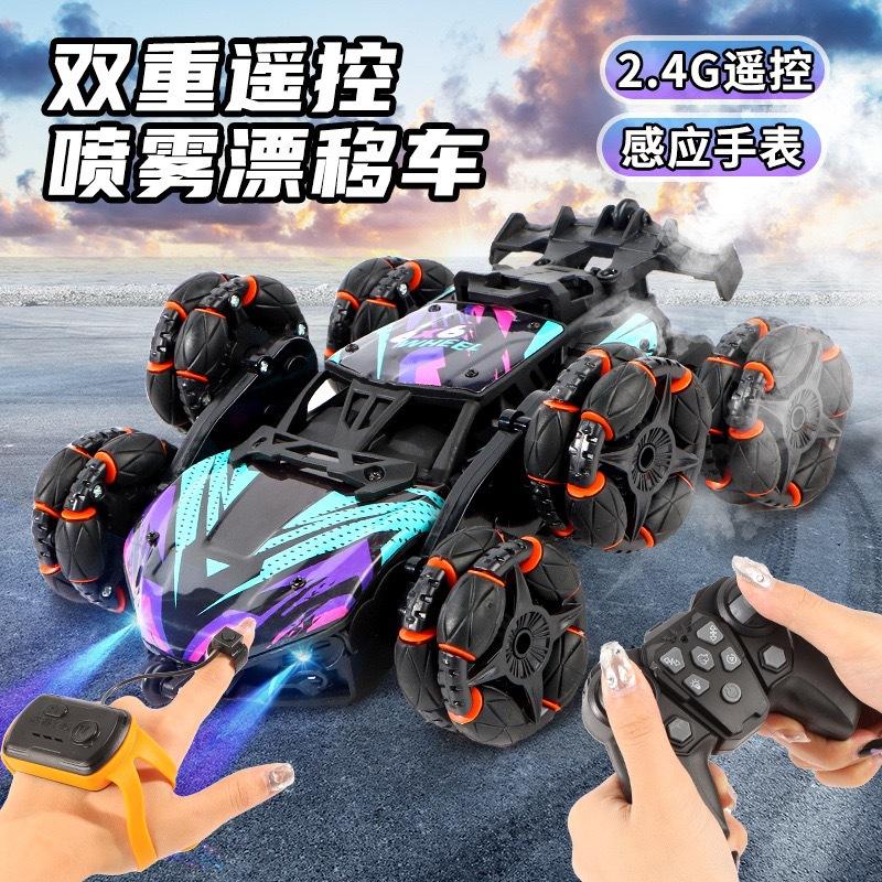Voiture cascadeuse RC 2.4 GHz avec jet de lumière 4WD hors route camion télécommande 6 roues voitures d'escalade RC