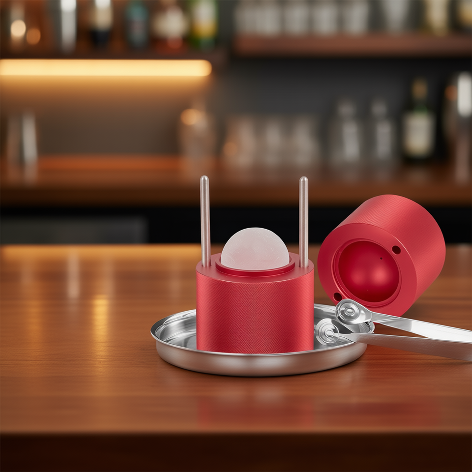 Kit de presse à boules de glace 60 mm en alliage d'aluminium réutilisable, pince à glace, plateau anti-goutte, accessoires pour boissons, rouge