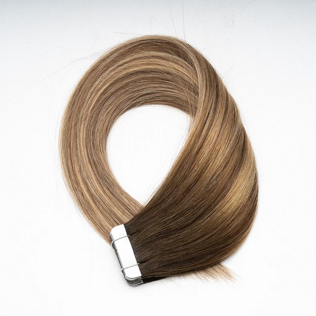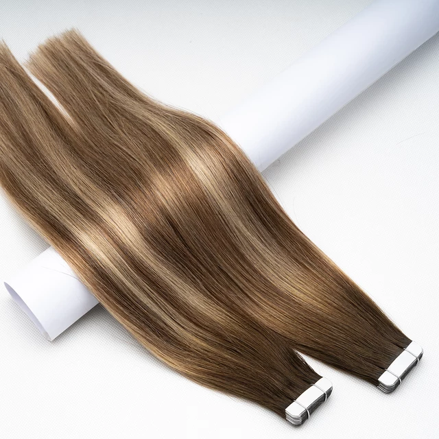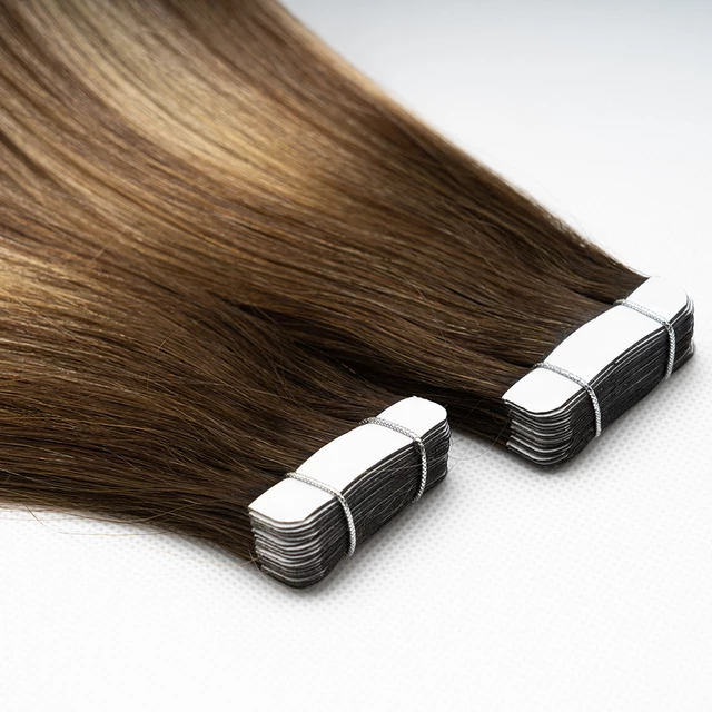 # 2 # Extensions de cheveux humains vierges russes Remy, super double drawn, à bandes adhésives, ondulées, brun foncé, ondulation naturelle, pour femmes