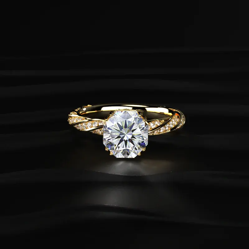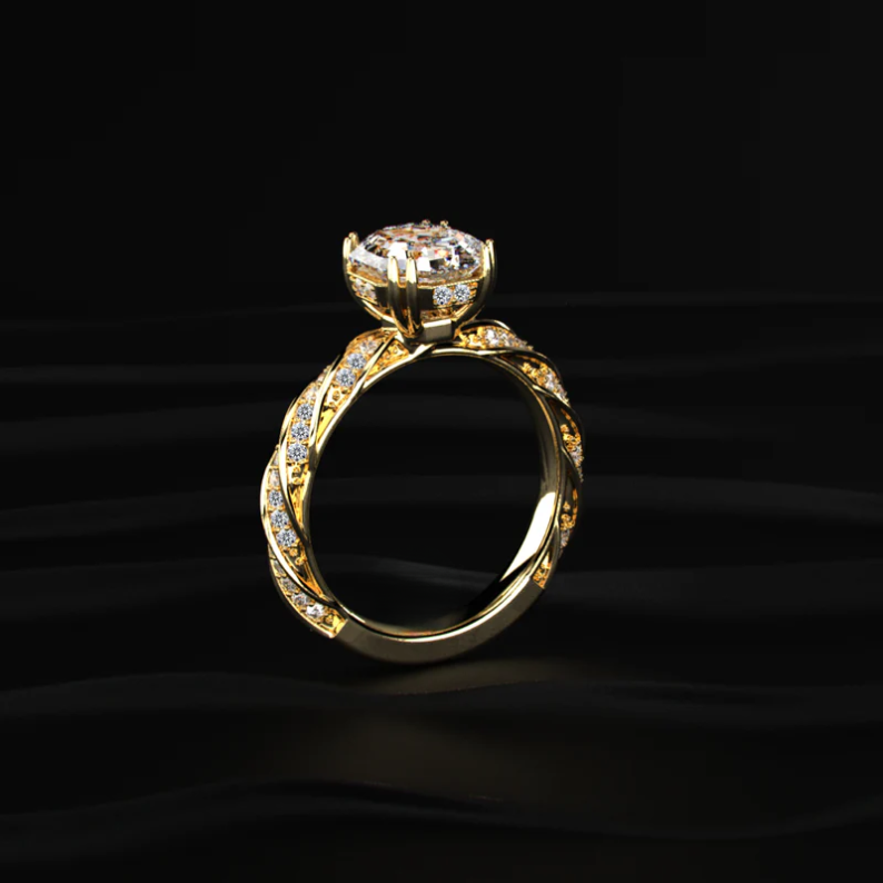 Bague solitaire en diamant octogonal de laboratoire 3 carats avec bande pavée torsadée, design spécial pour un look royal, clarté VVS-VS, certifiée IGI