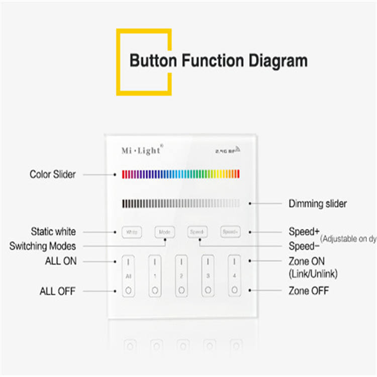 Product name:2.4G 4-Zone Smart Touch Panel led Dimmer with Dimming Function