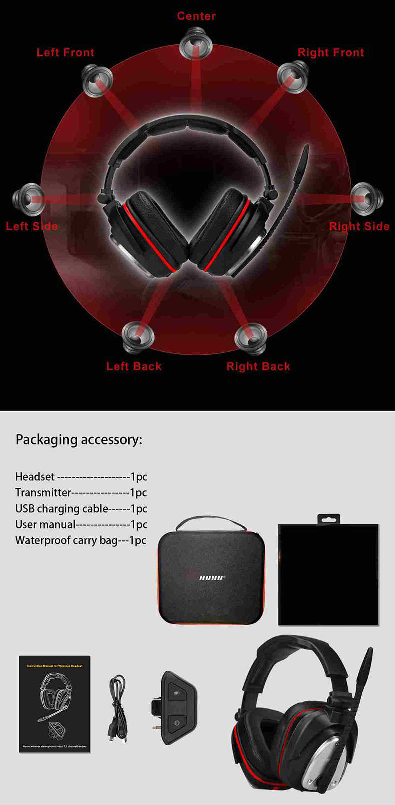 Casque de jeu 2.4G avec son 7.1 et 2.0, connexion USB/3.5/PlayStation, transmetteur métallique, vitesse rapide, casque pour joueurs