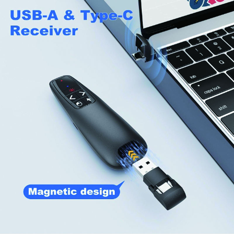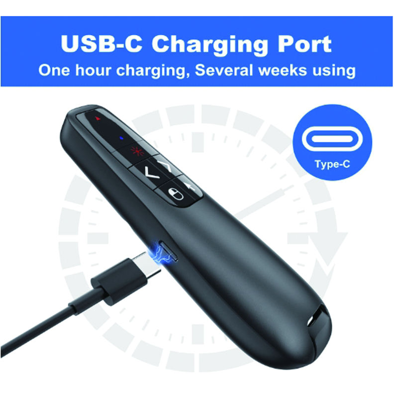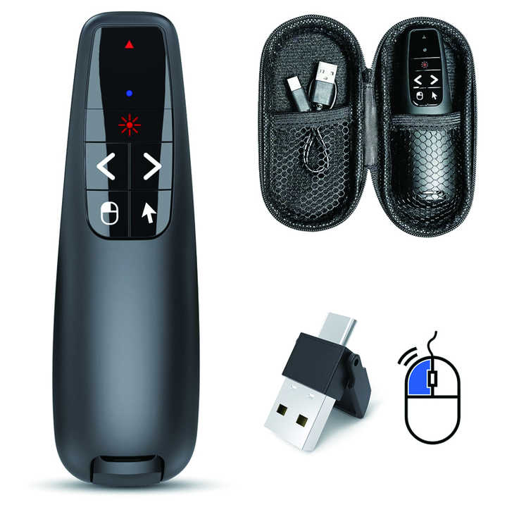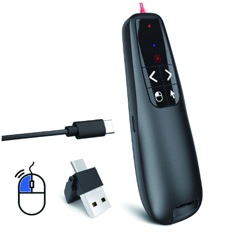 Présentateur Sans Fil 2.4G R400 Air Mouse Pointeur Laser Rouge Powerpoint avec Batterie Rechargeable USB-C pour Réunions, Formations et Enseignement