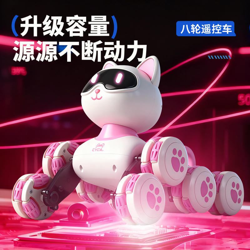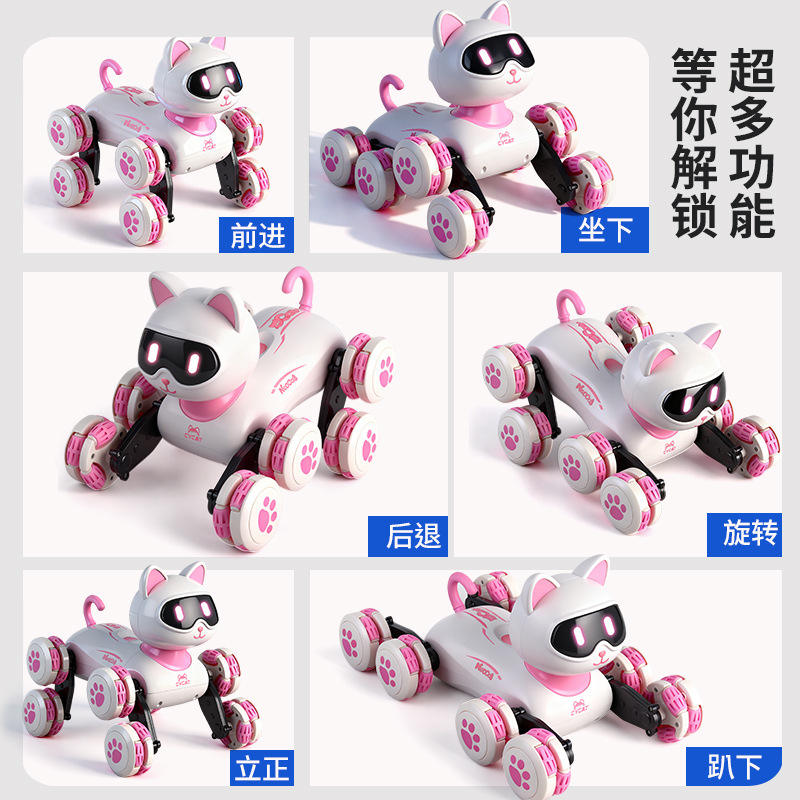 Robot interactif pour chat intelligent à 8 roues avec télécommande 2,4G, programmation, chant et danse