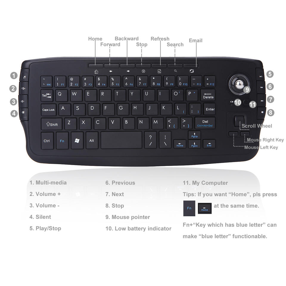 Caractéristique:2.4G wireless, keyboard and mouse two-in-one, track fan