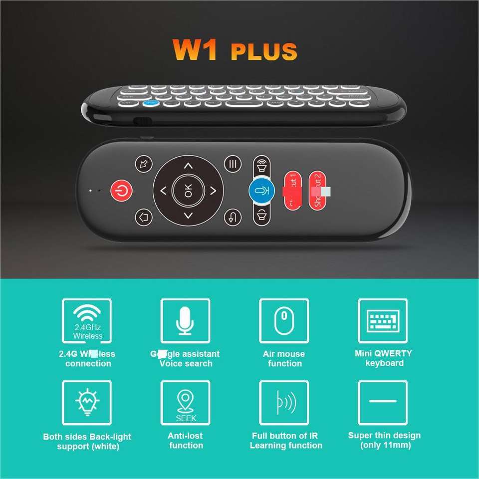 2.4G W1 PLUS Air Mouse Smart Anti-perte Voix Clavier Souris Infrarouge Apprentissage Télécommande Utilisation pour TV Set Top Box