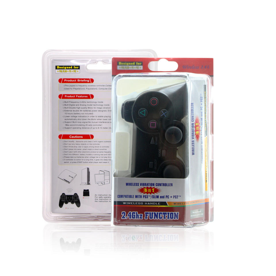 Manette sans fil 2,4 G compatible avec PS2 et PC, manette de jeu sans fil 3 en 1 pour console de jeu PS3