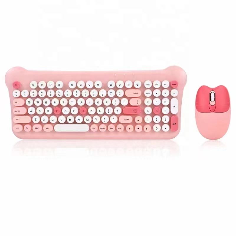 2.4G sans fil clavier et souris Combo rétro rond Keycap machine à écrire mignon coloré clavier souris ensemble pour ordinateur portable girs utilisation féminine