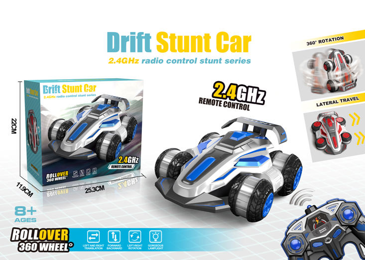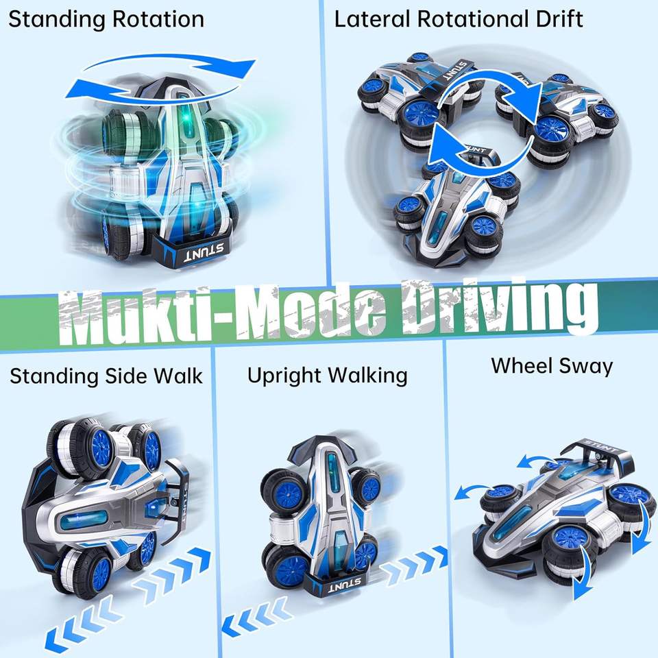 Voiture télécommandée 4 roues motrices 2,4 GHz, voiture télécommandée à rotation à 360 degrés, voiture télécommandée anti-gravité 2 en 1, voiture de course télécommandée, voiture de cascade avec lumières et musique