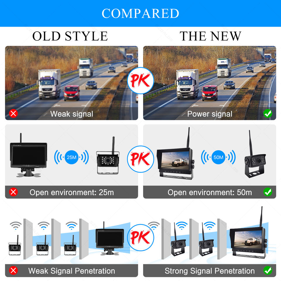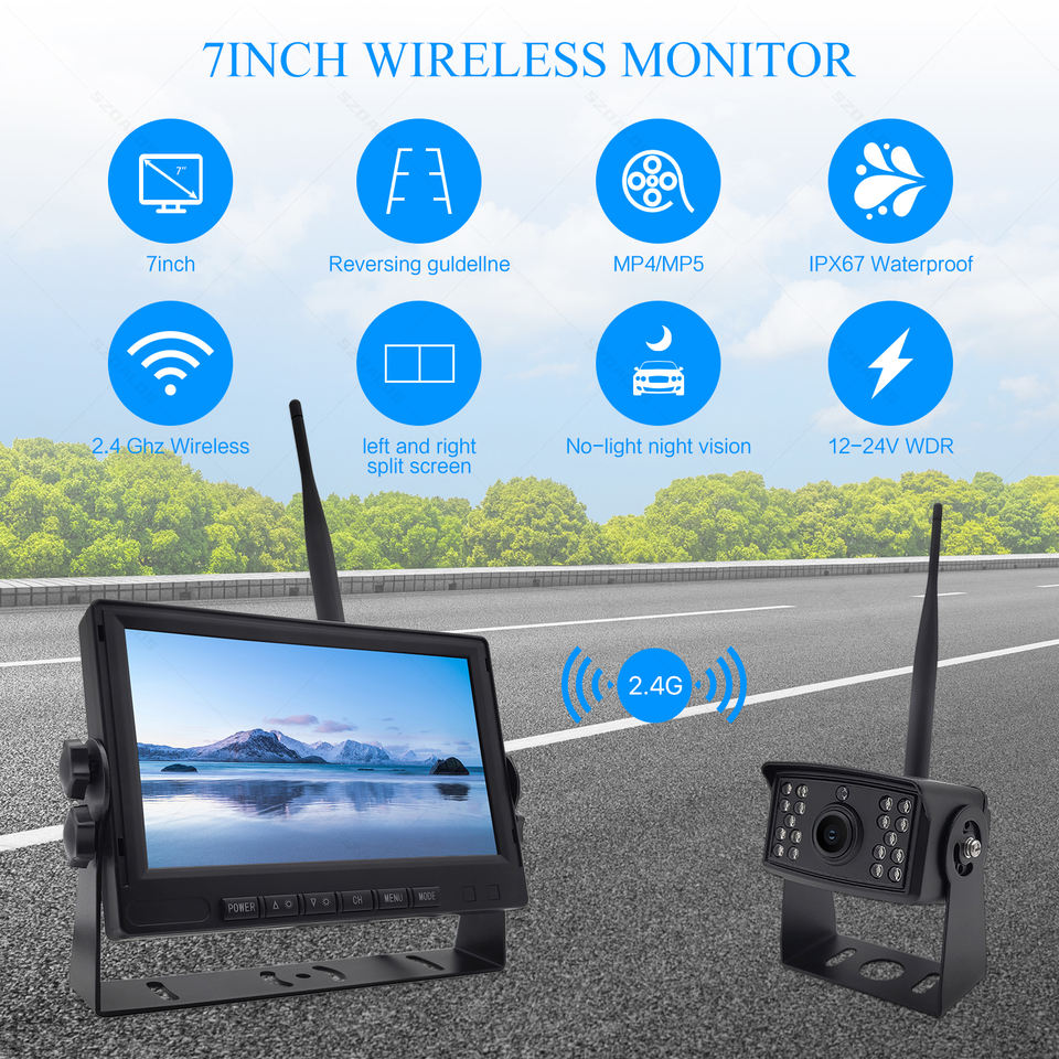 Caméra sans fil 2,4 GHz étanche IPX67 avec moniteur de recul de 7 pouces