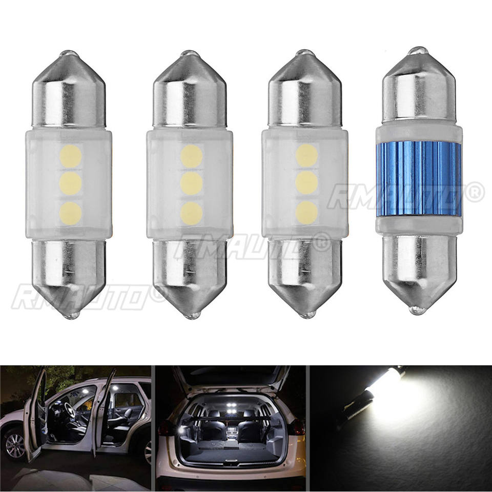 2/4PCS 31mm LED Featoon Dome Lights Car Interior Reading Map Lamp License Plate White