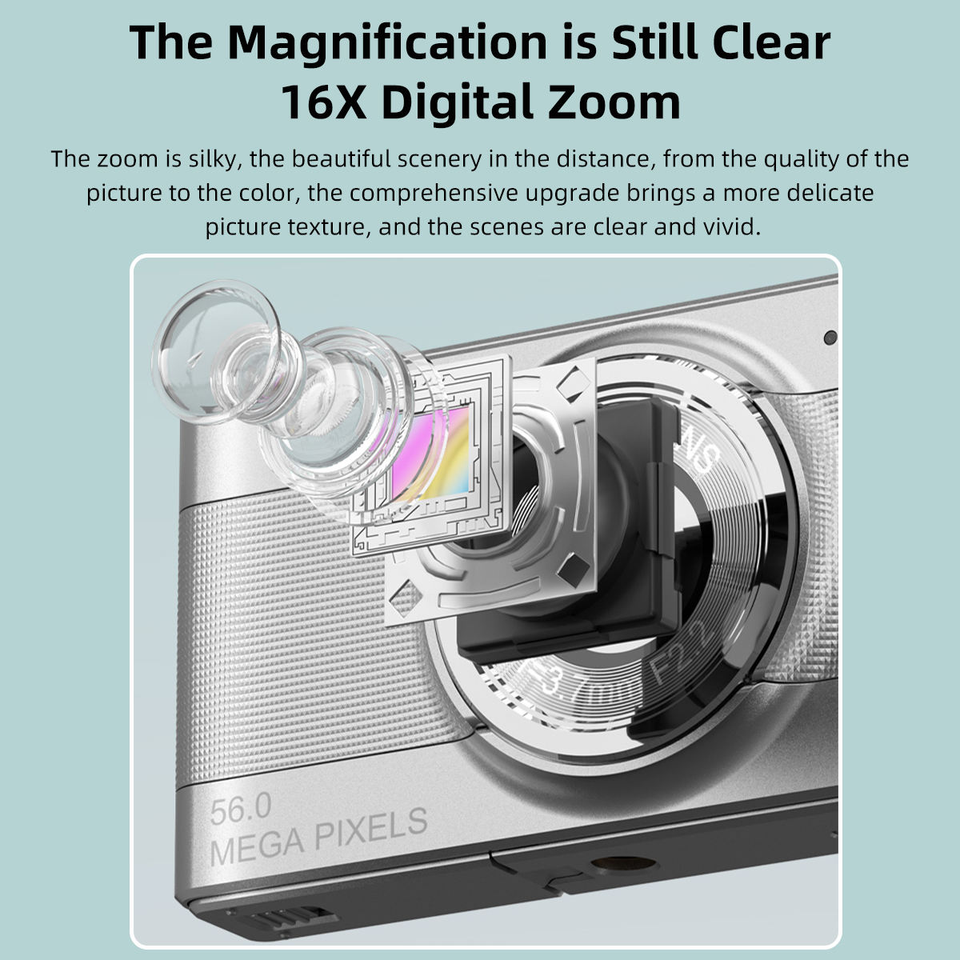 Appareil photo numérique avec écran vidéo de 2,4 pouces, 56 MP, zoom 16x, anti-vibration, reconnaissance faciale, appareil photo numérique HD pour étudiants
