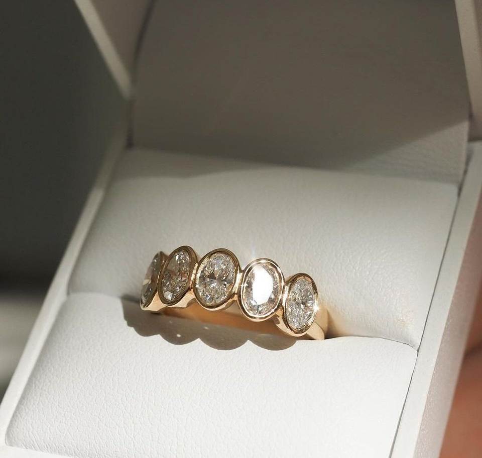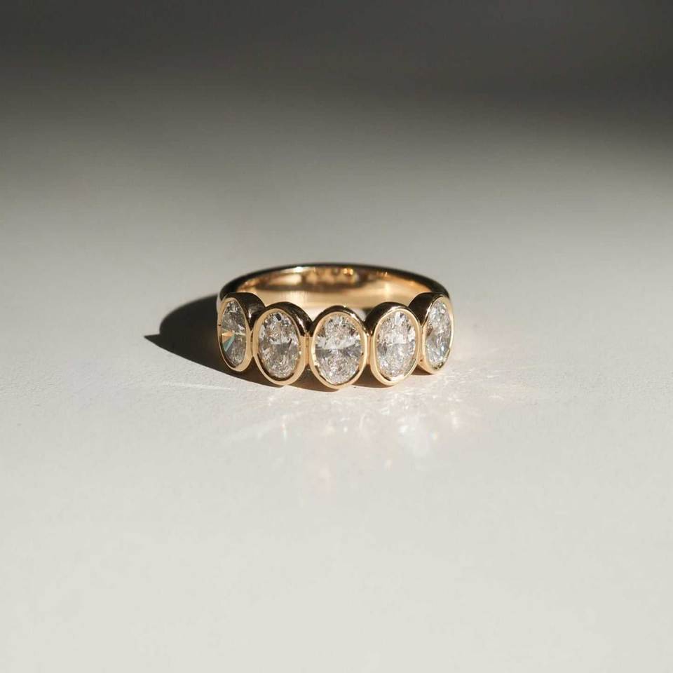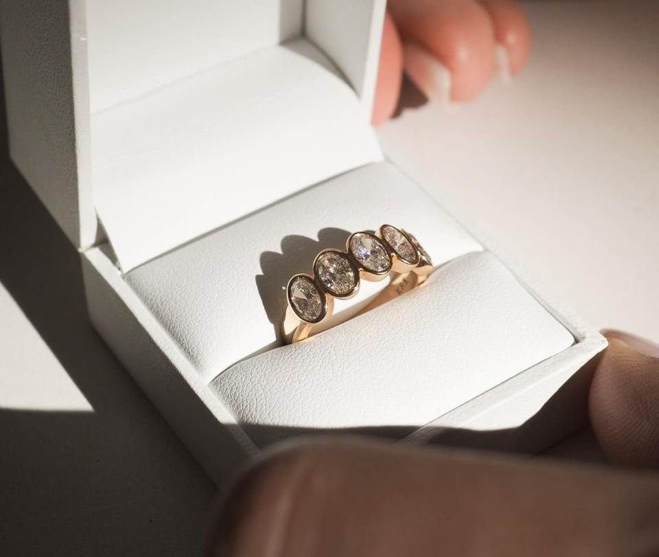 Bague de mariage demi-éternité en diamant de laboratoire taille ovale 2,5 CTW, sertie de cinq pierres en sertissage clos, bague de fiançailles en diamant CVD, joaillerie fine