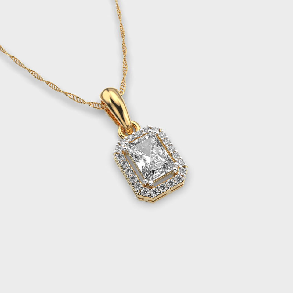 2.5 Carat Radiant Shape Lab Grown Diamond 14K Yellow Gold VS Clarity E Color IGI Certified Women Diamond Pendant Manufacturer