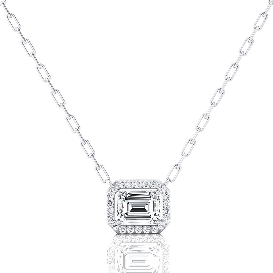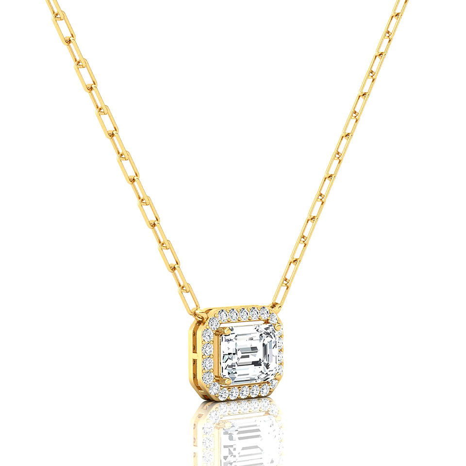 Pendentif solitaire halo en diamant de laboratoire taille émeraude 2,5 carats, clarté D VVS, certifié IGI, or pur 14K 18K, pendentif tendance pour femme