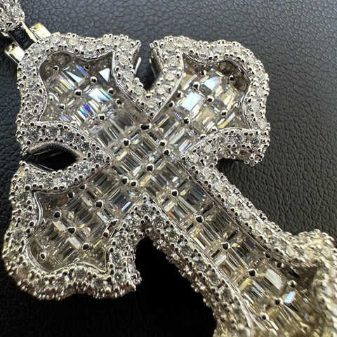 Pendentif Croix en Diamant Baguette de 2,5 Pouces, Certifié GRA D-E-F VVS1, Argent, Coupe Ronde Scintillante, Bijou Religieux, Cadeau