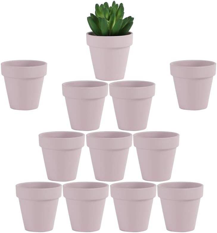 Pots en terre cuite rose de 2,5 pouces avec trous de drainage, écologiques, durables, petits pots en céramique pour cactus et fleurs