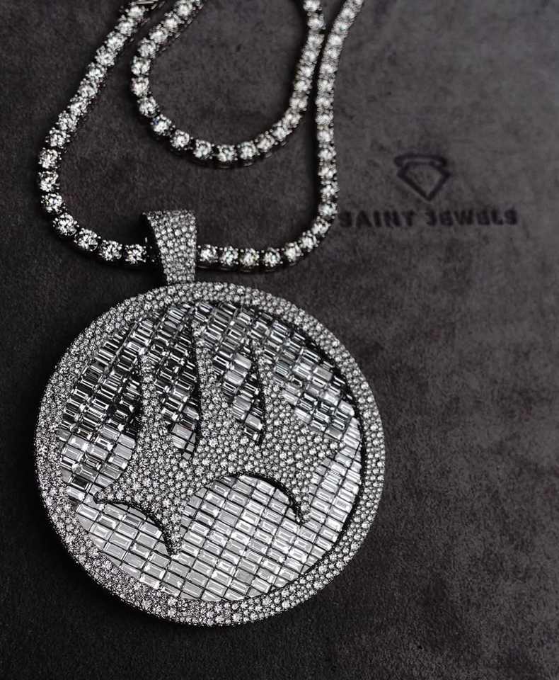 Pendentif rond en argent massif 925 de 2,5 pouces, ange personnalisé en moissanite avec sac à argent, chaîne hip-hop glacée