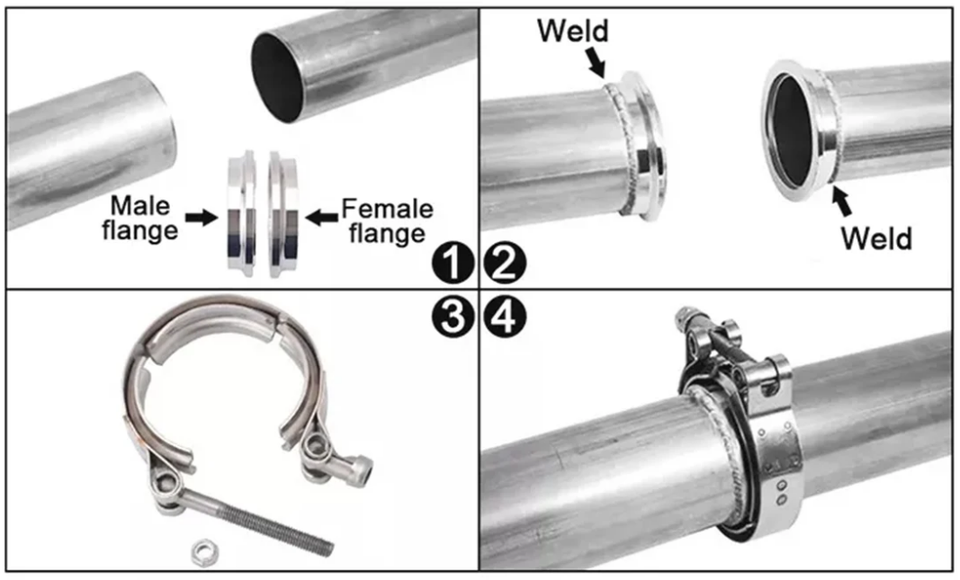 Collier de serrage V-Band 2,5 pouces pour échappement 1 1/2 en acier inoxydable, à dégagement rapide avec poignée