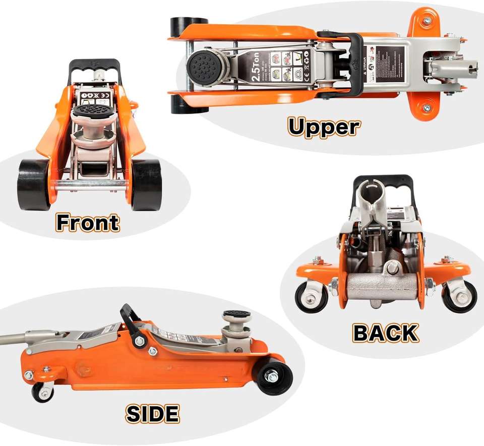 Cric hydraulique de course à profil bas de 2,5 tonnes (5 500 lb) en acier robuste pour voitures et usage en garage
