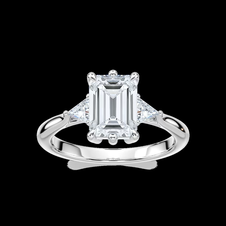 2.50 CTW Emerald Cut Lab Grown Diamond Three Stone Engagement Ring IGI Certified 14K Solid Gold