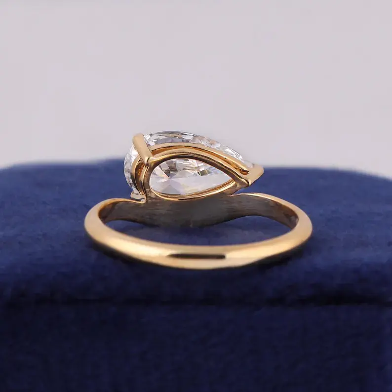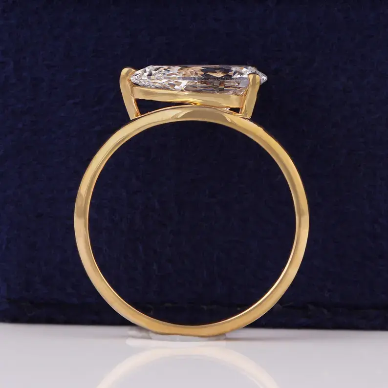 Bague incurvée en diamant de laboratoire taille brillant de 2,50 carats, certifiée IGI, or jaune 14 carats