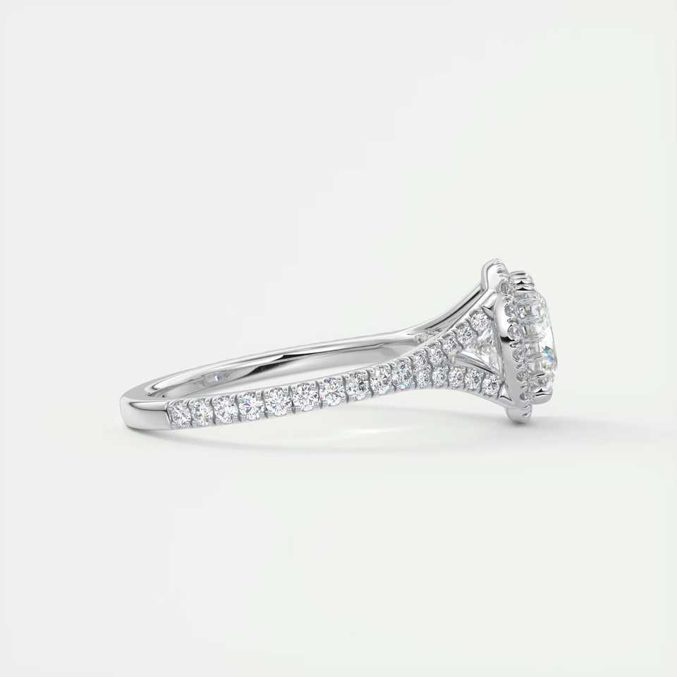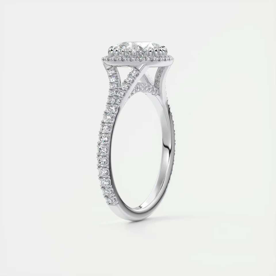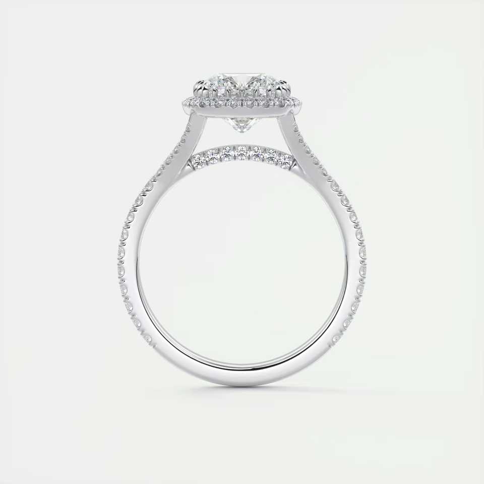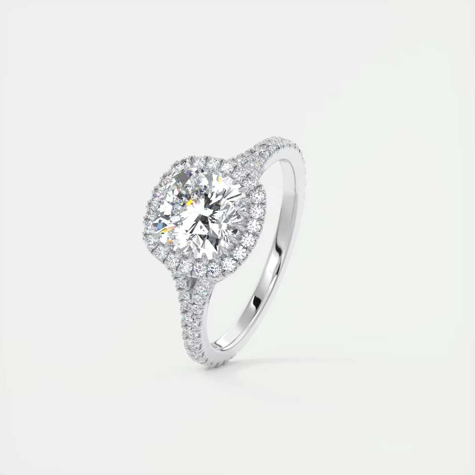 Bague de fiançailles avec diamant de laboratoire taille coussin de 2,50 carats, halo français, halo caché, griffes miniatures et pavé français