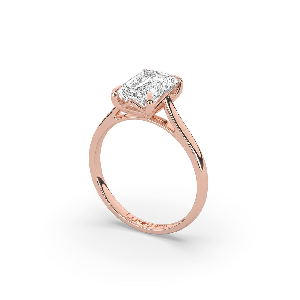 Bague de fiançailles en diamant de laboratoire taille émeraude 2,50 carats, or massif 14K 10K, design léger et unique, bijoux d'anniversaire pour femme