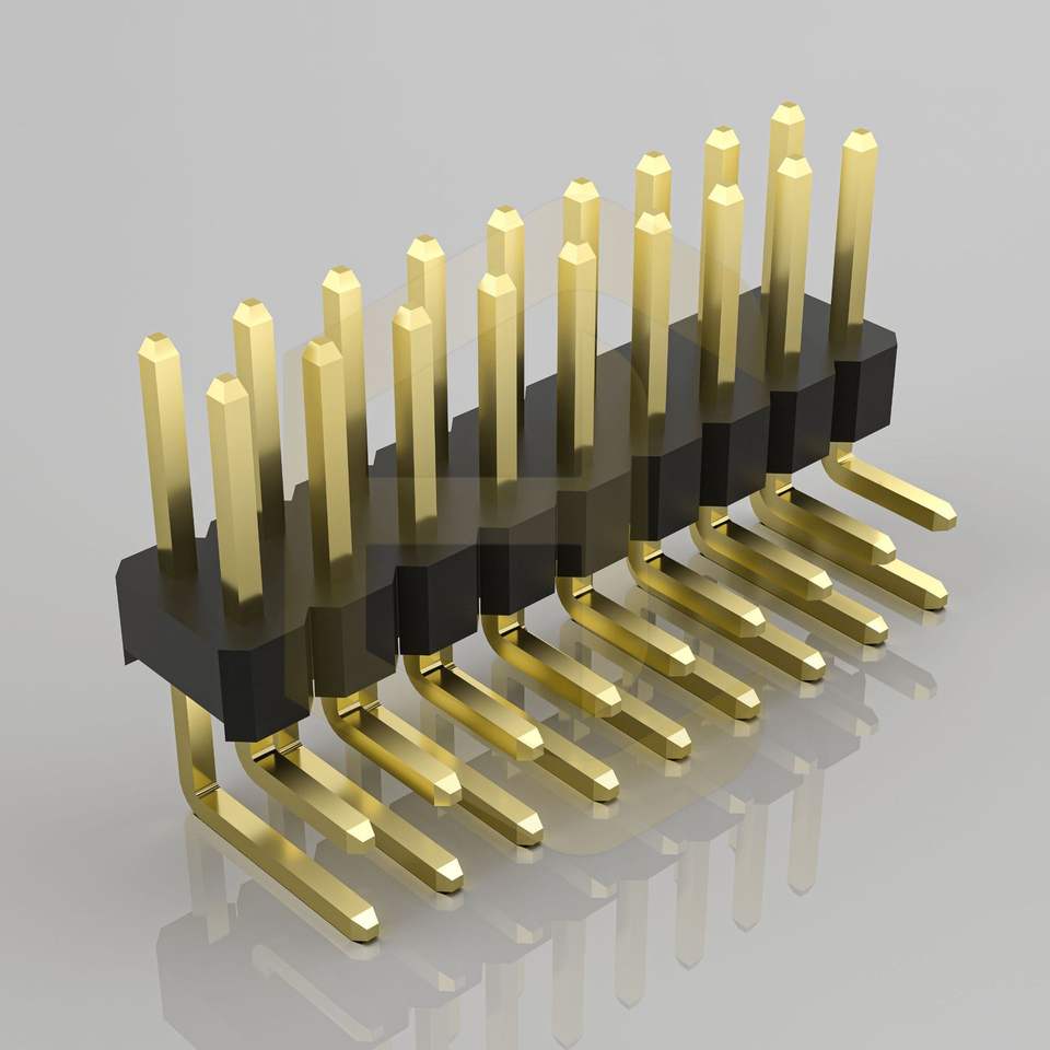 Connecteur de broches mâle à angle droit 90 degrés, double rangée, pas de 2,54 mm, PZ254-2-06-W-2.5
