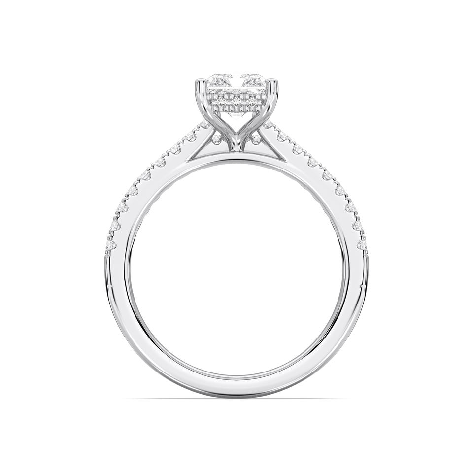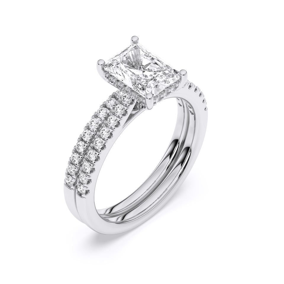 2.55 Ct E-F/VVS-VS (centre 2.00 Ct) Bague de fiançailles en diamant Moissanite coupe radieuse et ronde avec bande assortie en platine 950