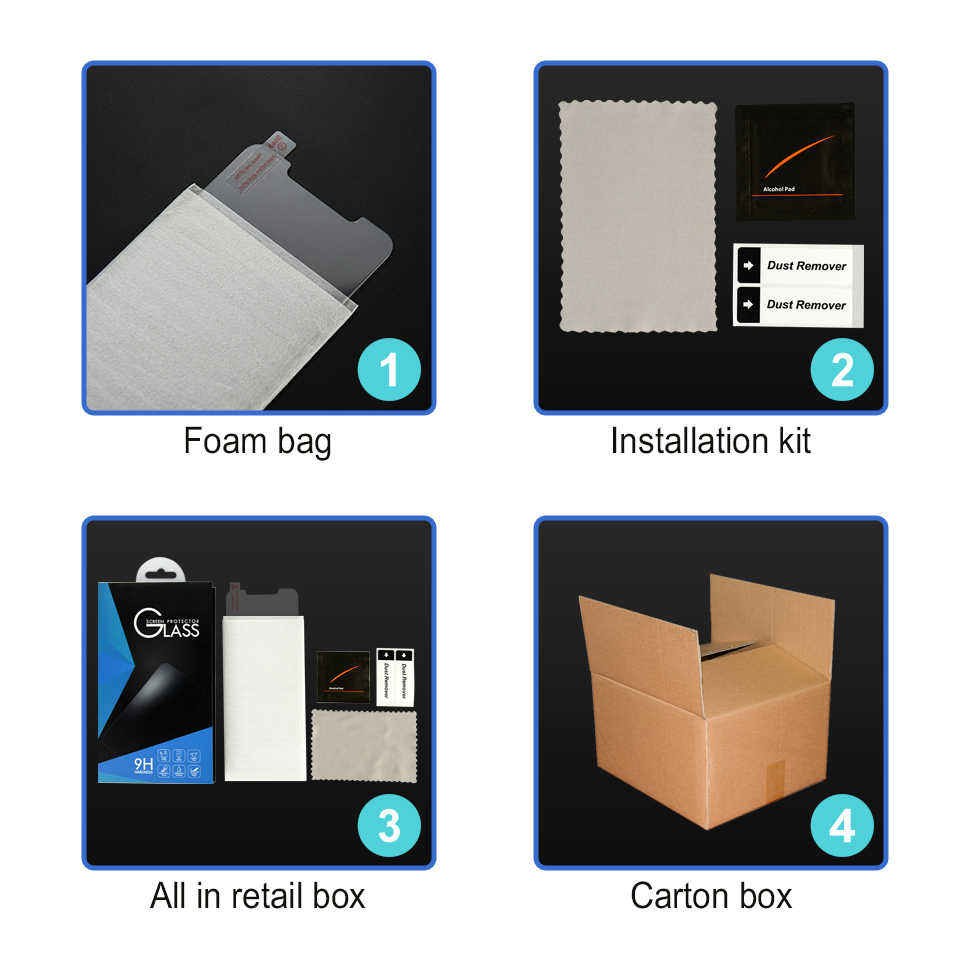 1. Standard packing: 1 pc of screen protector + colorcard + clearing cloth + inner polybag +outer opp bag.