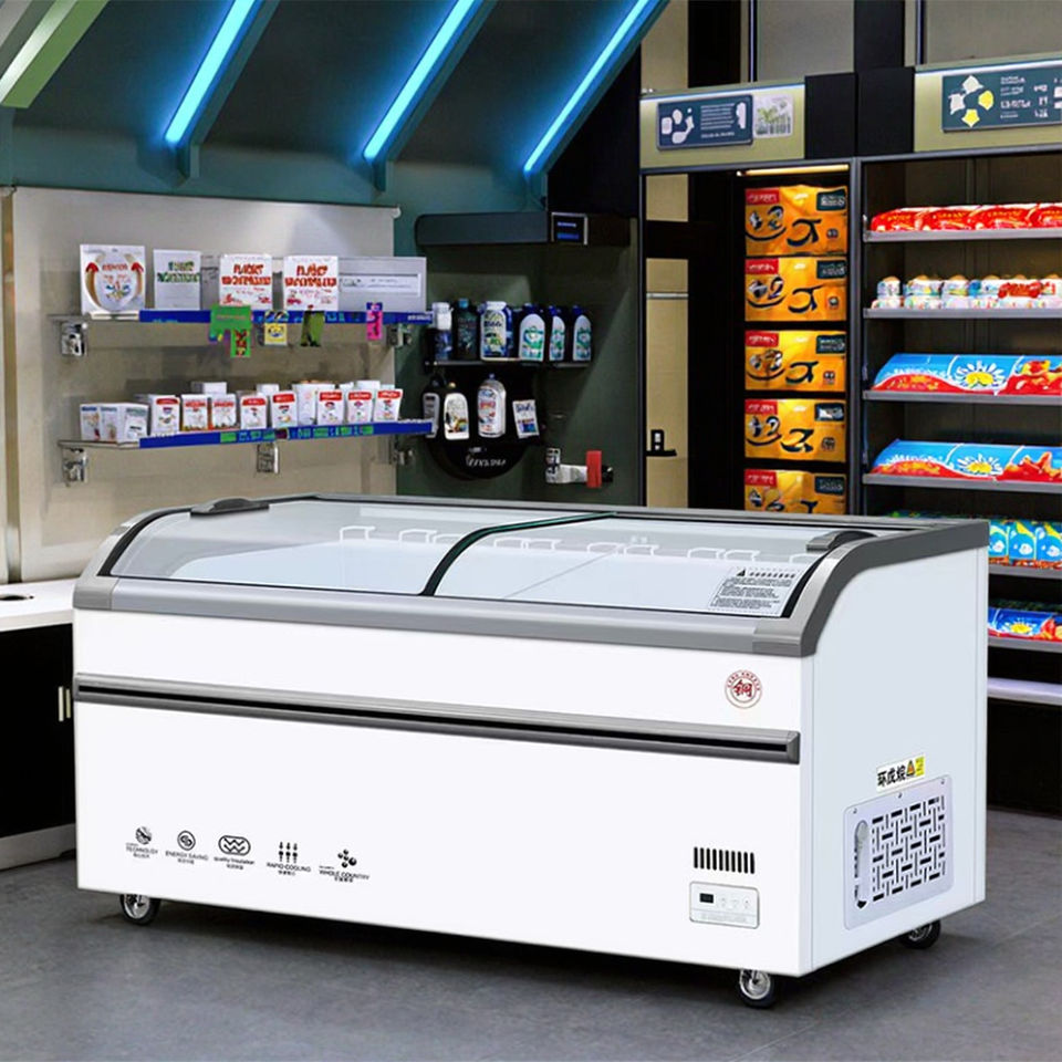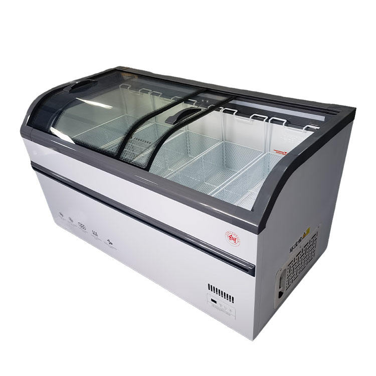 Product name:Double curved glass top cover island freezer