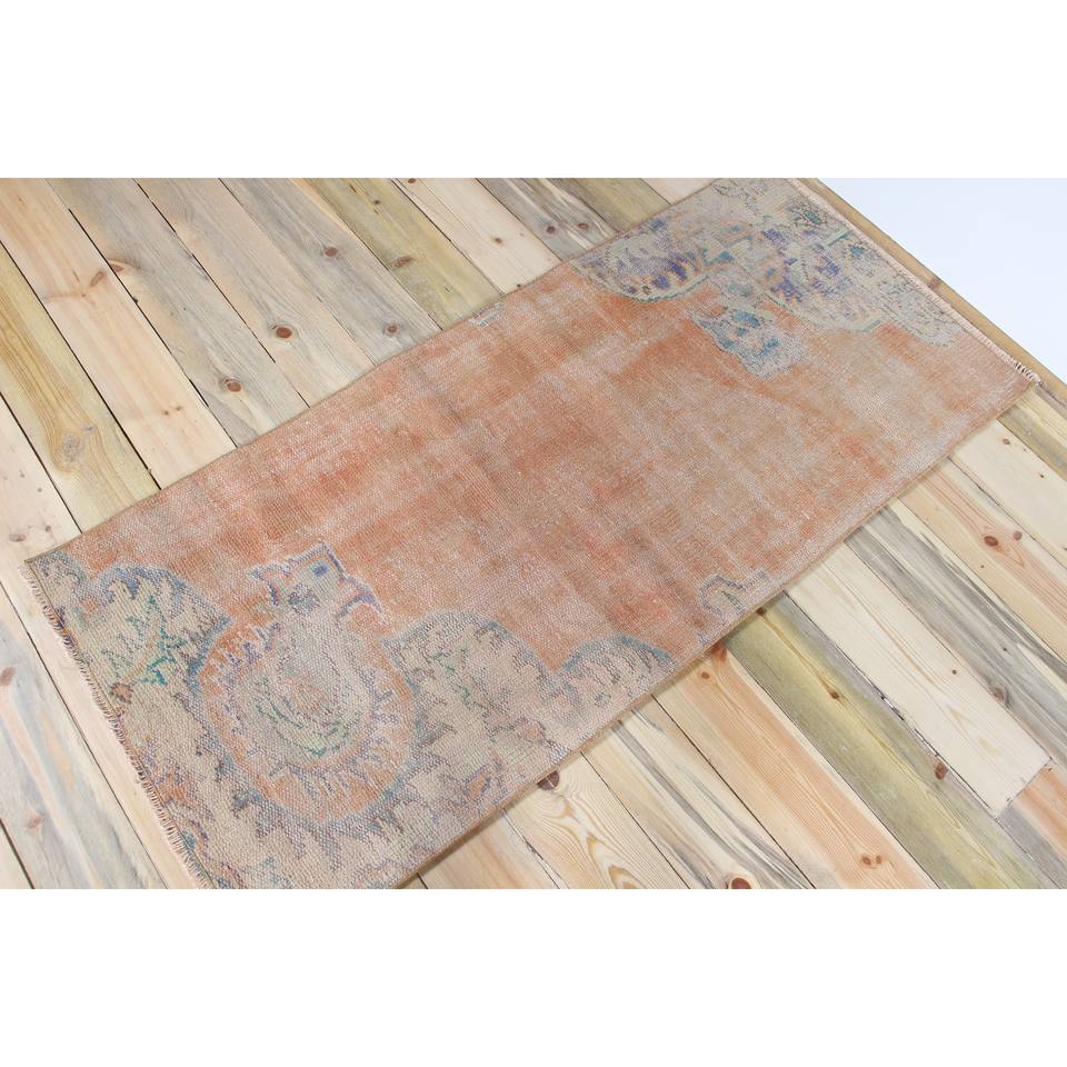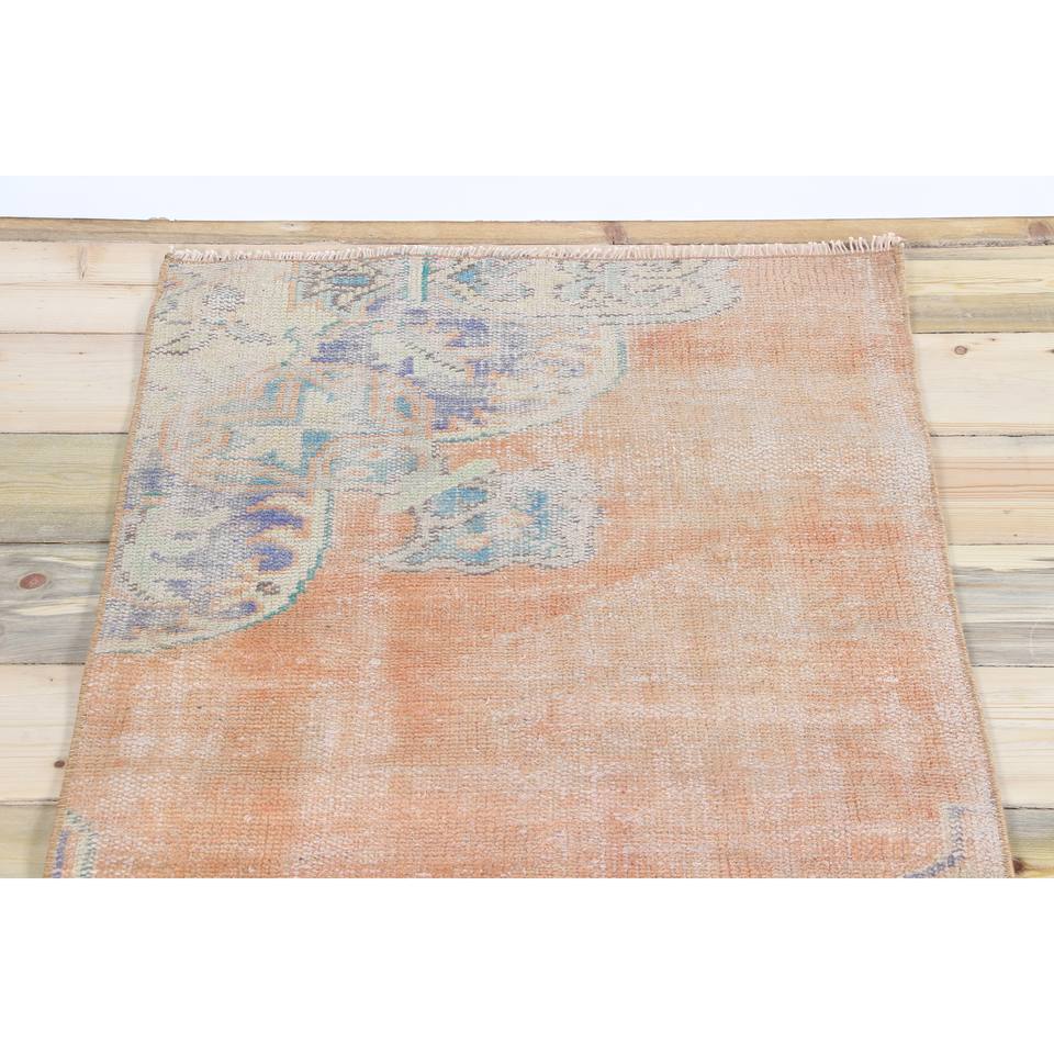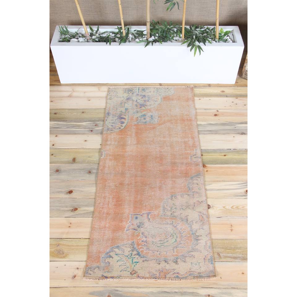 Tapis turc 2,5 x 5,4 pieds, petit tapis vintage, tapis à motifs floraux orange