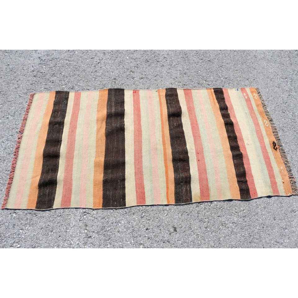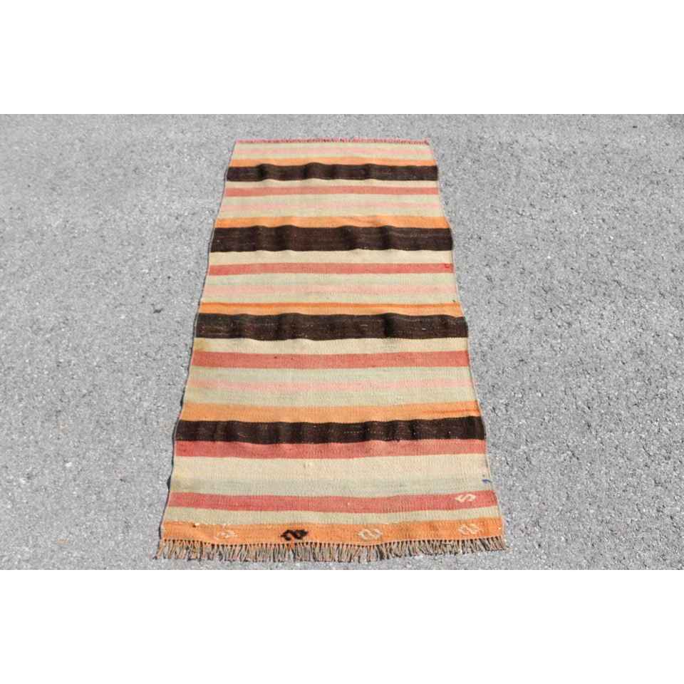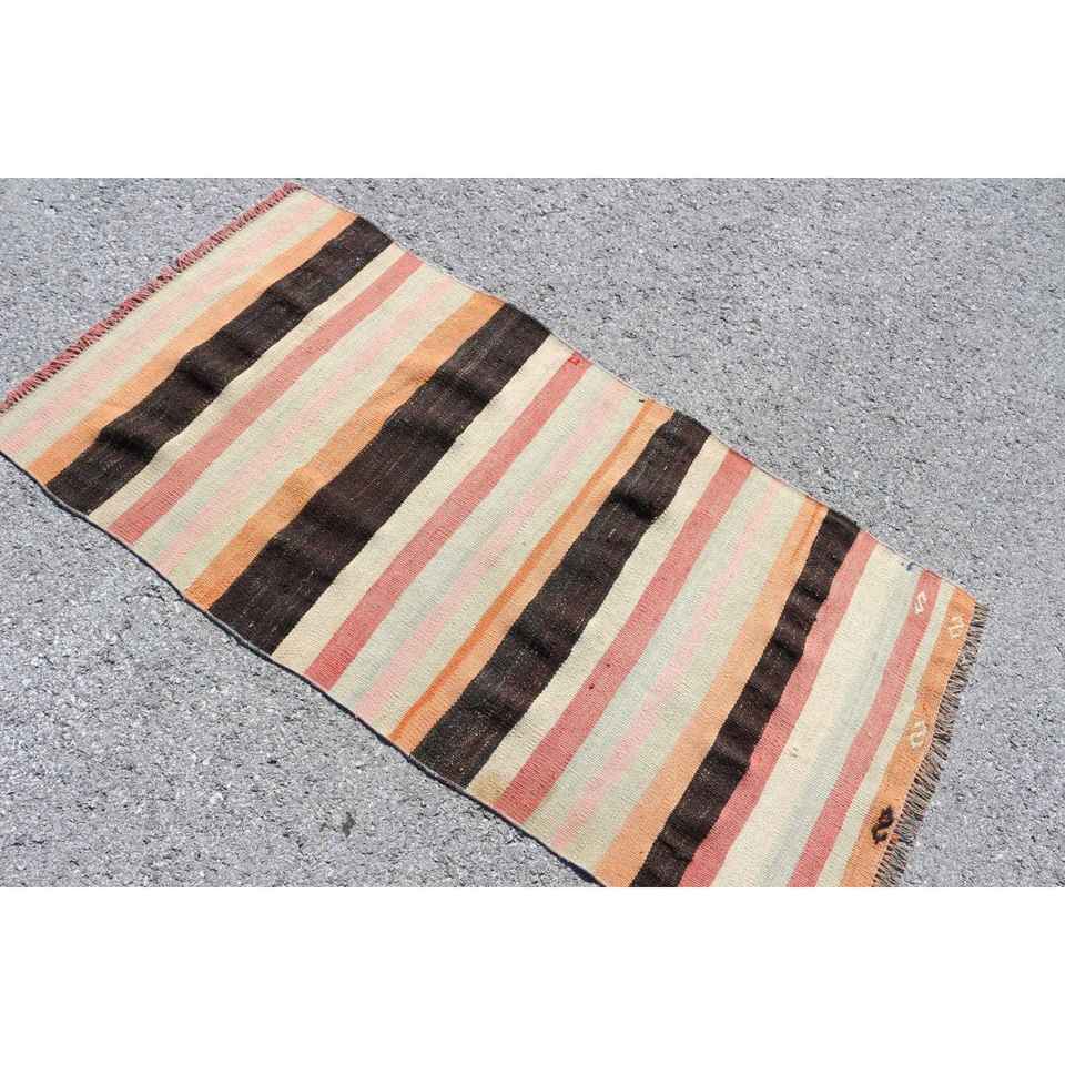 Petit tapis vintage en laine patchwork de 2,5 x 5 pieds, tapis turc à bordure marron avec envers en latex, respectueux de l'environnement