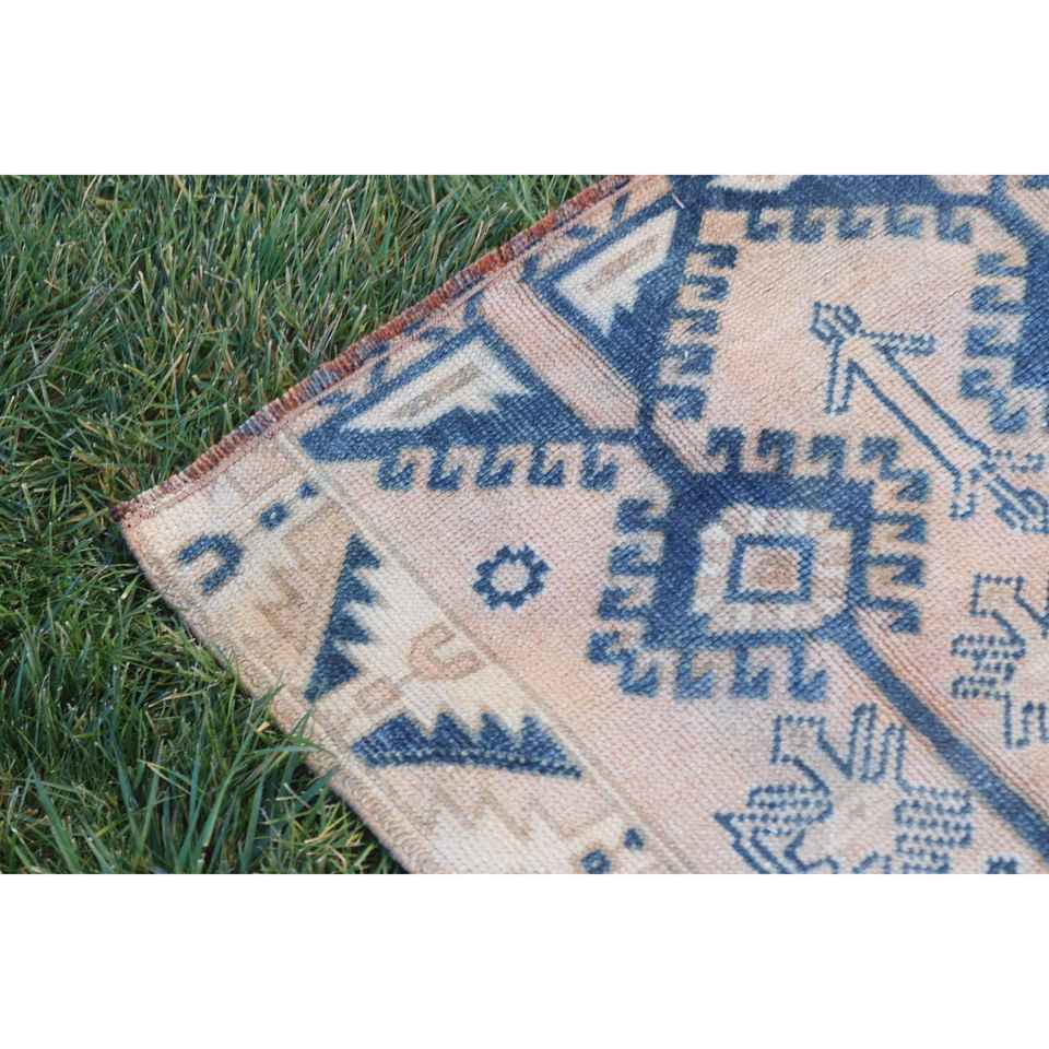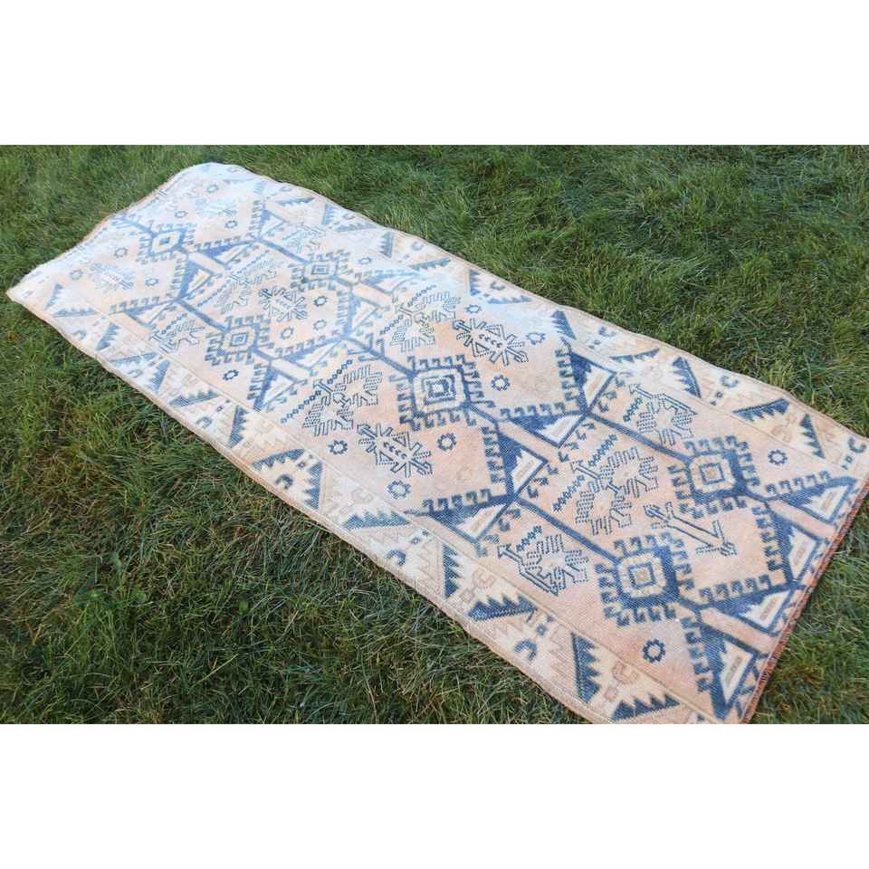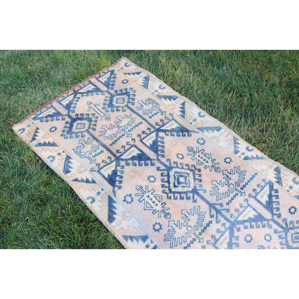 Tapis de 2,5 x 6,6 pieds, tapis turc vintage, tapis oriental en laine bleu et blanc
