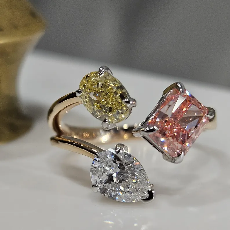 Bague de fiançailles et de mariage en or massif 14 carats avec trois diamants de laboratoire de 2,62 carats, style arbre multi-formes, cadeau d'anniversaire.