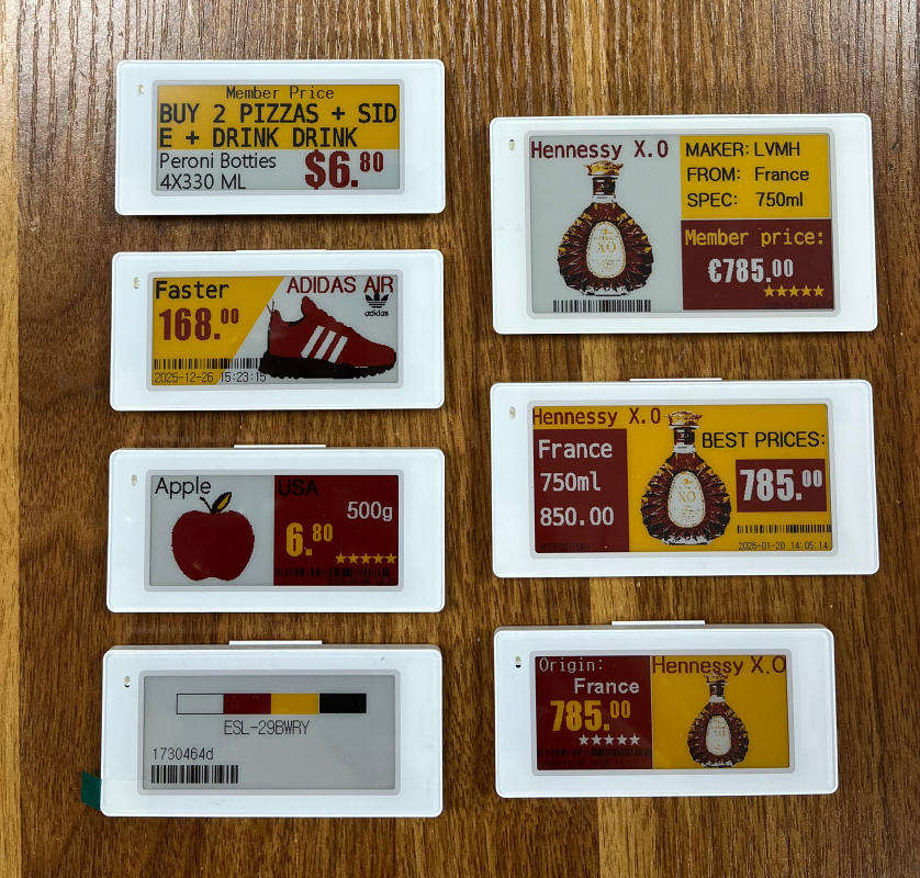Étiquettes de prix numériques de 2,66 pouces, étiquettes électroniques pour rayonnages, noir/blanc/rouge/jaune, 4 couleurs, ESL pour fruits et légumes, supermarché