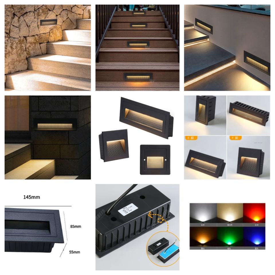 2-6W Aluminium Extérieur Étanche LED Pied Lumière IP65 Indice Intégré Mur Coin Cour Carré Étape Rampe Veilleuse